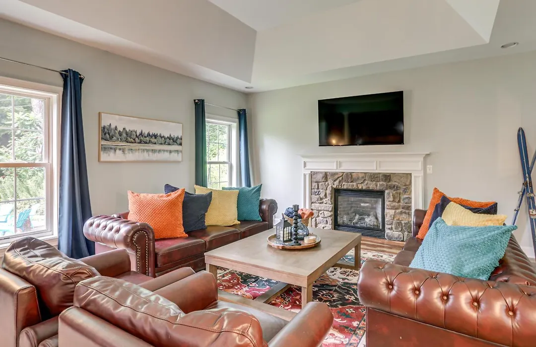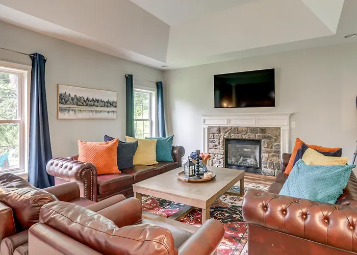 Situated 3 km from the Holiday Valley Tubing Park, Game Room And Hot Tub Big Fun In Ellicottville villa invites guests to relax at a patio.
